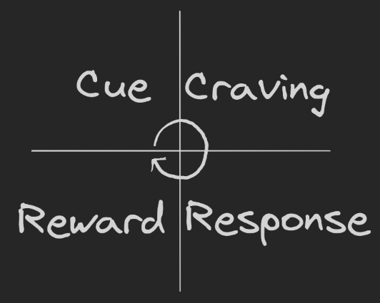 The cue is about noticing the reward, craving is about wanting the the reward, response is about obtaining the reward.